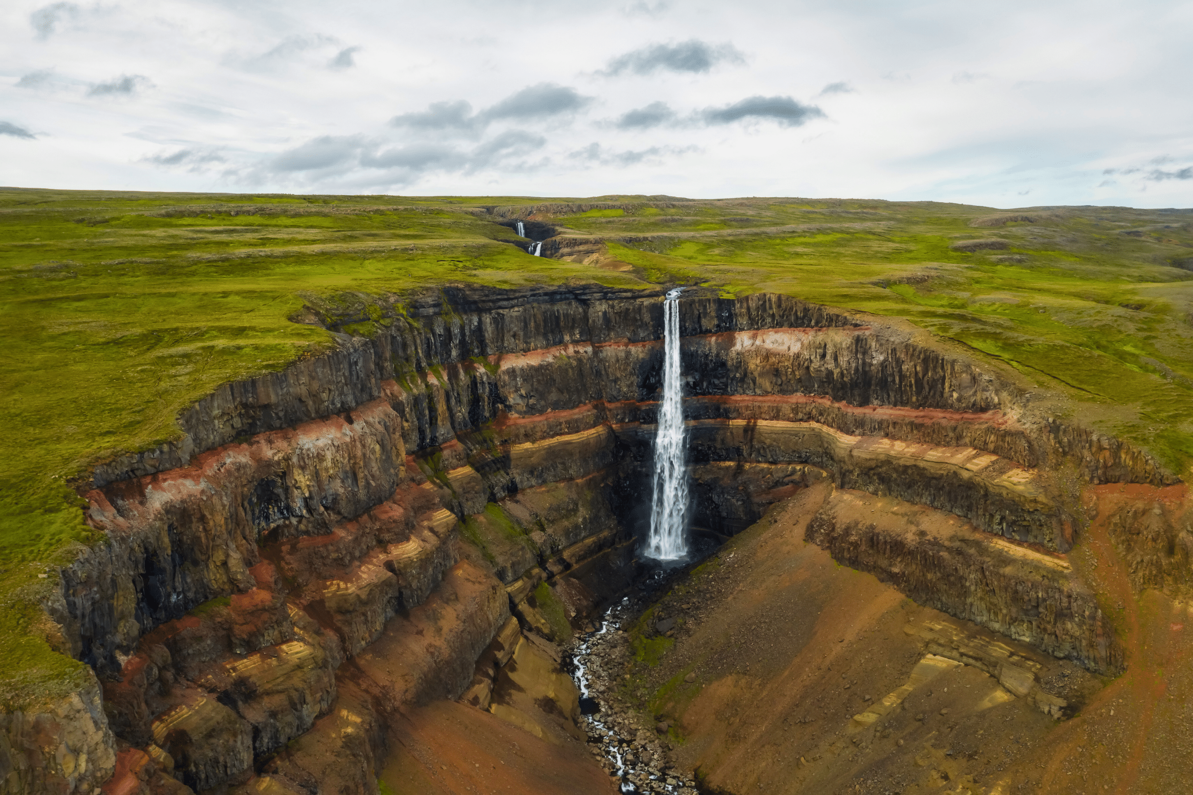 At the end of Lagarfljót River, you’ll find Hengifoss, one of Iceland’s tallest waterfalls at around 420 ft (128 m). Though the height is impressive, the main reason why you should visit Hengifoss is the striped cliffs from which it falls.