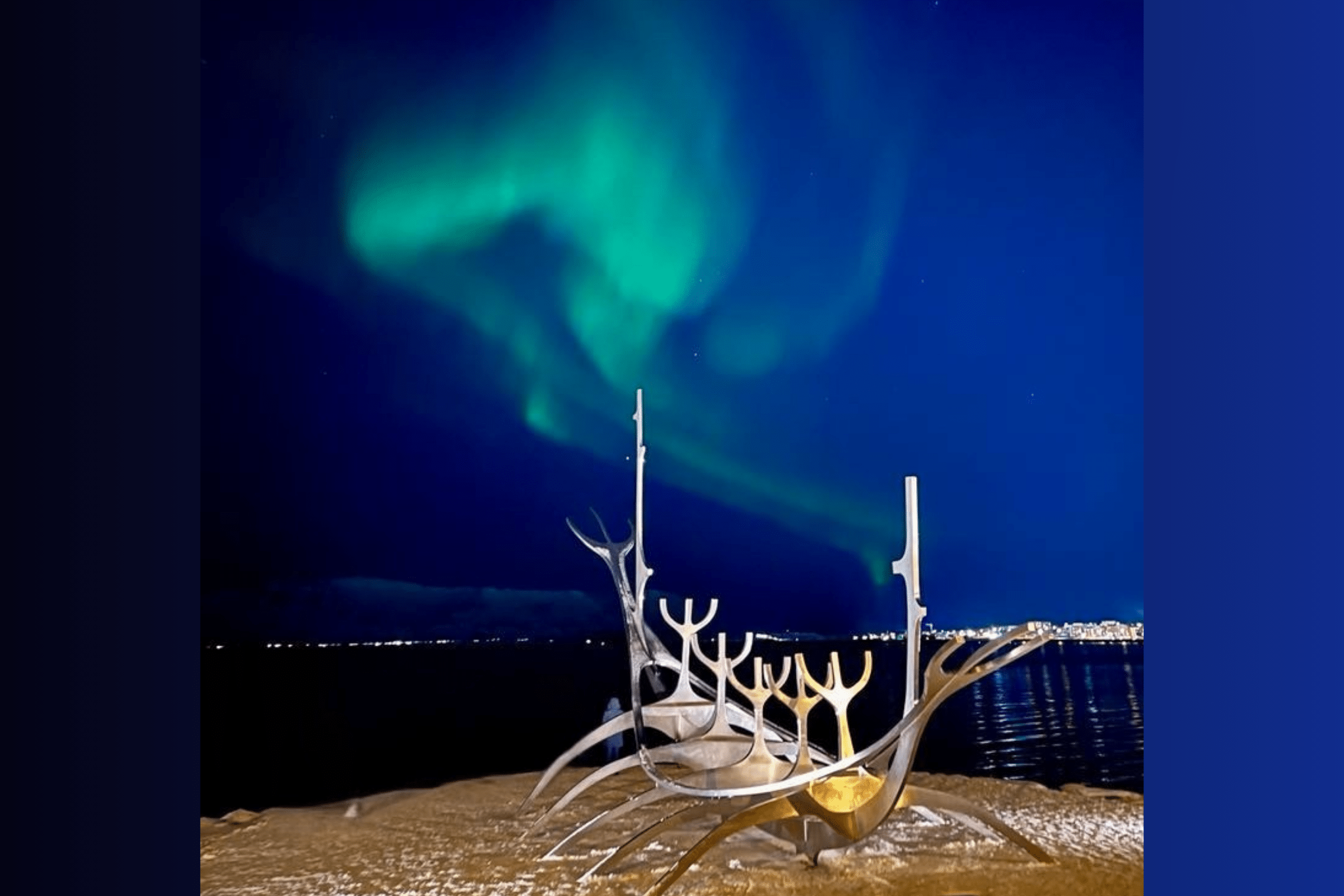 Le Sun Voyager est une grande sculpture en acier sur le front de mer de Reykjavík qui ressemble à un navire viking. Surplombant l'océan et le mont Esja, le Sun Voyager est un lieu photographique populaire en été et en hiver, surtout lorsque les aurores boréales sont éteintes.