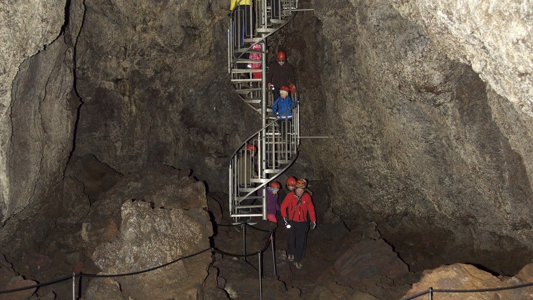 Vous descendrez un escalier métallique de 35 mètres (100 pieds) dans cet ancien tube de lave. Votre guide vous emmènera sur le chemin de la lave en fusion créée il y a des milliers d'années. En chemin, vous verrez des couleurs spectaculaires de violet et de gris ainsi que des stalagmites et d'autres formations rocheuses étranges.