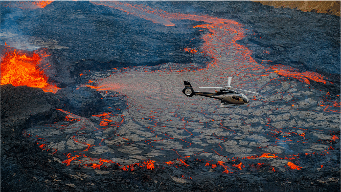 - Helicopter tours offer breathtaking aerial views of the lava flow and eruption site.